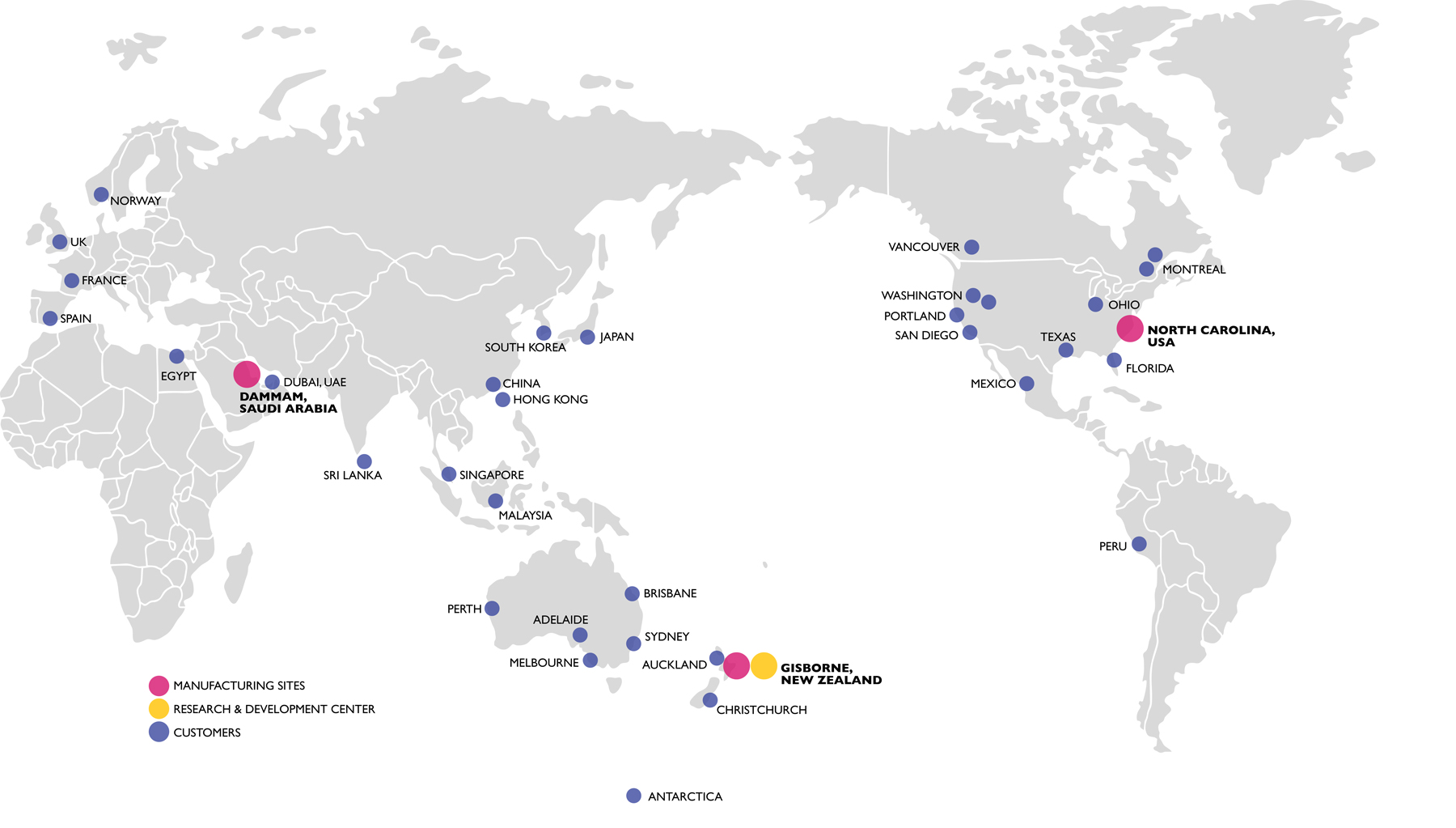 Both locations serve their key clients, including Transportation Departments and other large government agencies to build stronger, more durable, and sustainable infrastructure using Mateenbar™, a product whose technology and intellectual property were 100% developed in-house by Pultron Composites in New Zealand.
